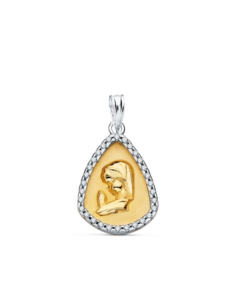 Medalla de oro de 9 kilates de la virgen niña, tiene un tamaño de 21×14 mm.