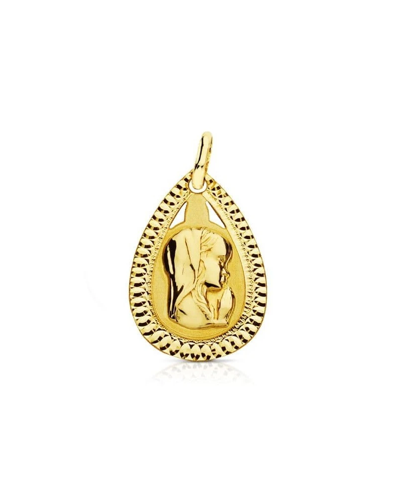 Medalla de oro de 9 kilates de la virgen niña, tiene un tamaño de 20×13 mm.