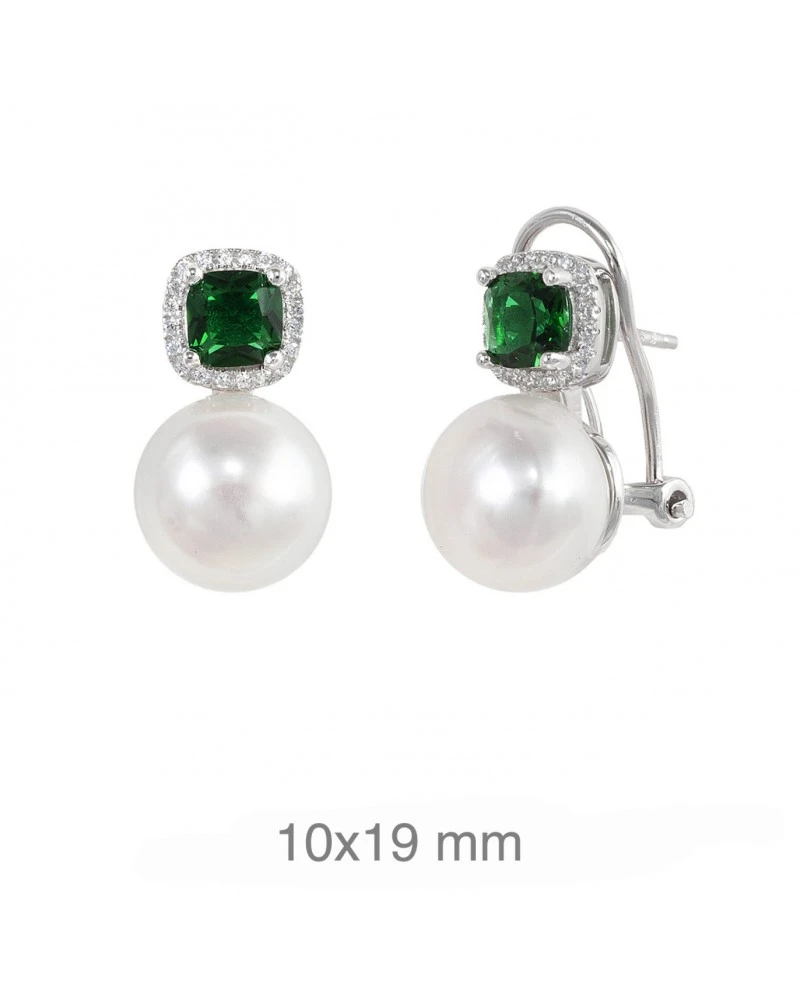 La parte de arriba es una circonita en color verde cuadrada, rodeada de circonitas transparentes engastadas a mano una a una.