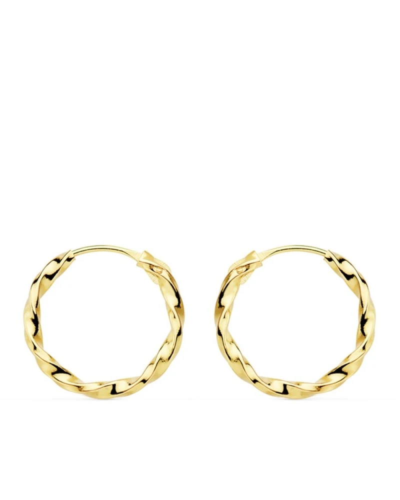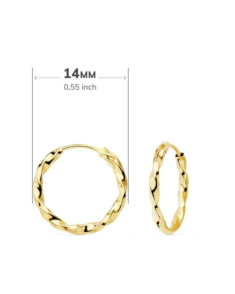Aros huecos galloneados. El tamaño de los pendientes es de 14 x 1,50 mm. Estos pendientes forman parte de la colección de oro de Falomir Joyas, y se entrega con estuche y marca de contraste oficial.