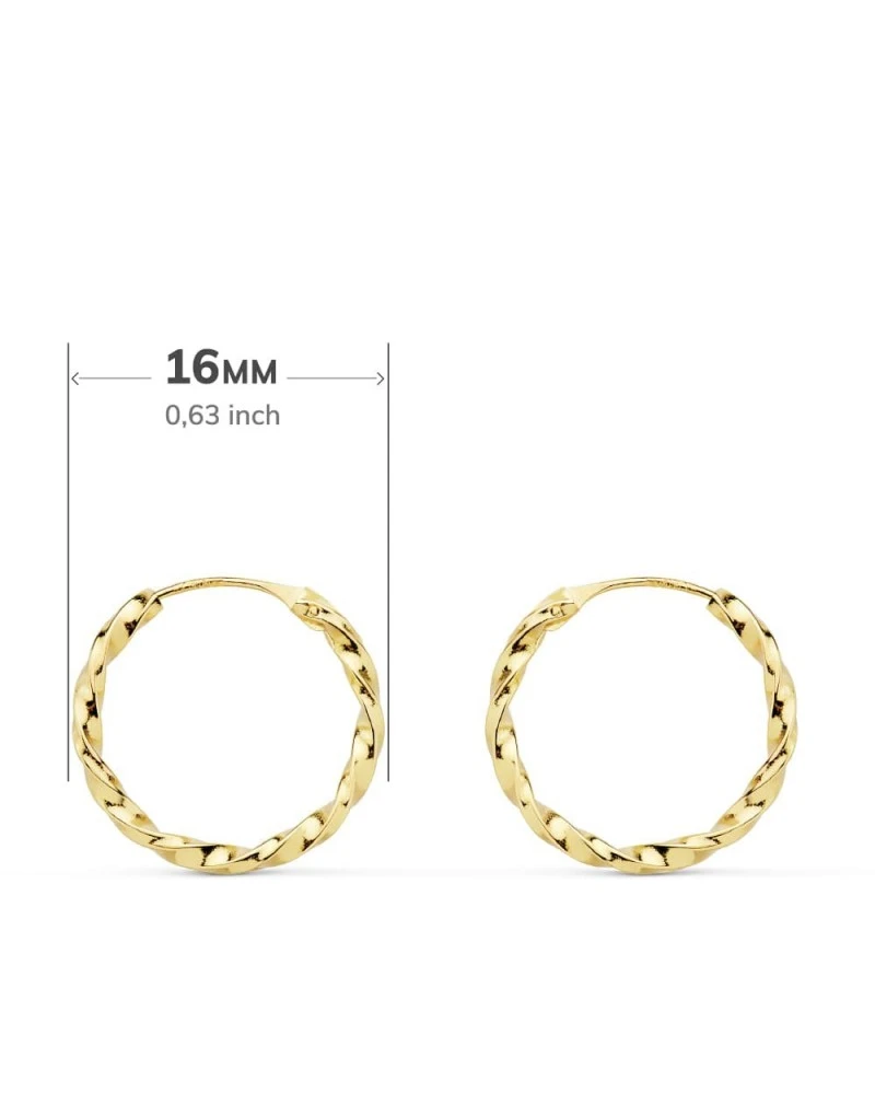 Aros huecos galloneados. El tamaño de los pendientes es de 16 x 1,50 mm. Estos pendientes forman parte de la colección de oro de Falomir Joyas, y se entrega con estuche y marca de contraste oficial.