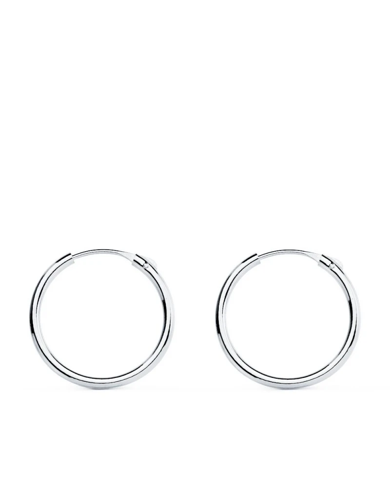 Aros blancos huecos redondos. El tamaño de los pendientes es de 15 x 1,20 mm. Estos pendientes forman parte de la colección de oro de Falomir Joyas, y se entrega con estuche y marca de contraste oficial.