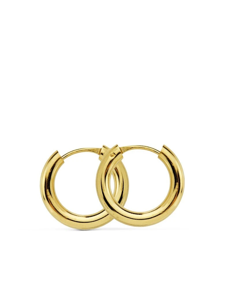 Aros redondos lisos y ligeros. El tamaño de los pendientes es de 14 x 2,50 mm. Estos pendientes forman parte de la colección de oro de Falomir Joyas, y se entrega con estuche y marca de contraste oficial.