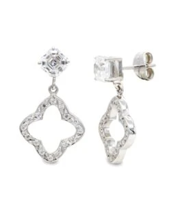 18K PENDIENTES ORO BLANCO LARGOS CIRCONITAS 27X15 MM