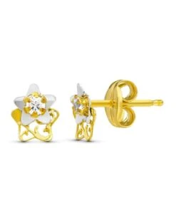 18K PENDIENTES ORO BICOLOR ESTRELLA 6X5 MM