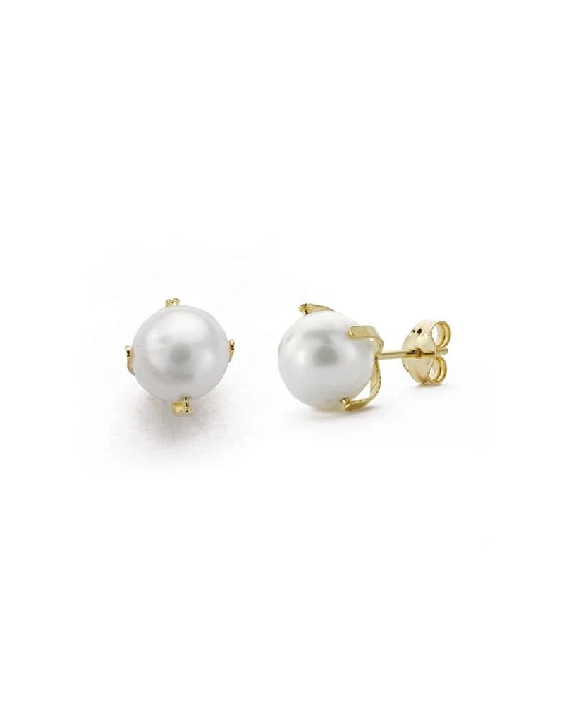 18K PENDIENTES ORO AMARILLO PERLA 7 MM 4 PATILLAS PRESION