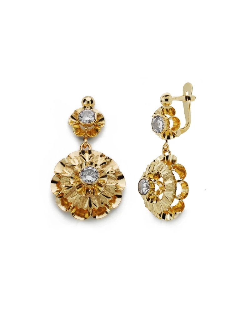 Pendientes de oro amarillo de 18 kilates colgantes y con cierre de palanca. Tienen un tamaño de Estos pendientes forman parte de la colección oro de Falomir joyas. Los pendientes incluyen marca de contraste 750, sello oficial y se entrega con estuche de la marca.