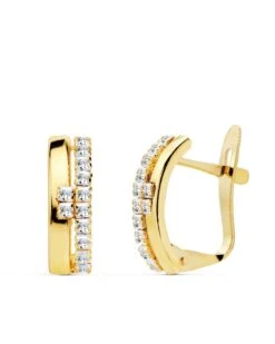 Pendientes de oro amarillo de 18 kilates, circonitas. Tienen un tamaño de 14 x 4,5mm. . Estos pendientes forman parte de la colección oro de Falomir joyas. Los pendientes incluyen marca de contraste 750, sello oficial y se entrega con estuche de la marca.