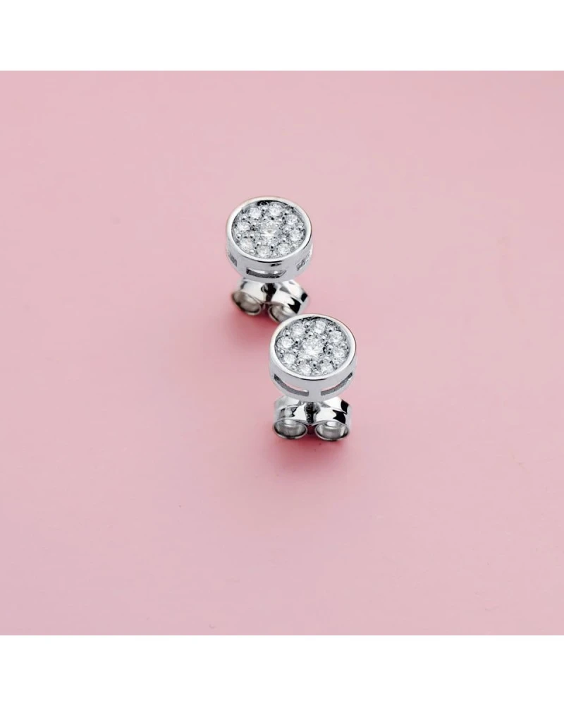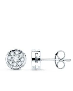Pendientes de oro amarillo de 18 kilates con diamantes de 0,360 qts. y cierre a presión. Tienen un tamaño de 7x7mm.