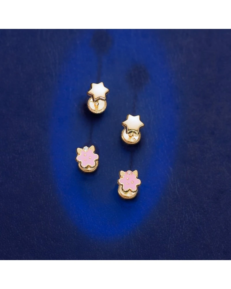 El cierre de los pendientes es de rosca. No de presión. Si habéis leído el post que os dejábamos anteriormente ya lo sabréis. Los pendientes de rosca son ideales ya que permiten poder dormir con los pendientes sin que se claven detrás de la oreja.