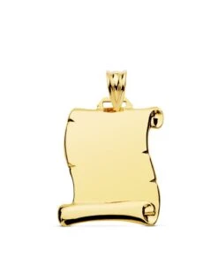 Pergamino de oro de 18k con un tamaño de 22x19mm. Los pergaminos forman parte de la colección de oro de Falomir Joyas, y se entrega con estuche y marca de contraste oficial. *El precio que aparece no incluye ni grabado ni personalización.