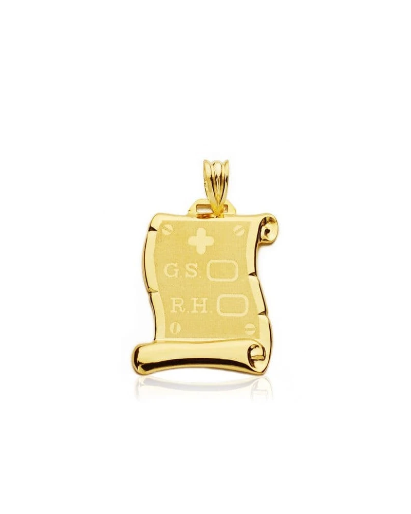 Pergamino de oro de 9k con un tamaño de 24x17mm. Los pergaminos forman parte de la colección de oro de Falomir Joyas, y se entrega con estuche y marca de contraste oficial. *El precio que aparece no incluye ni grabado ni personalización.