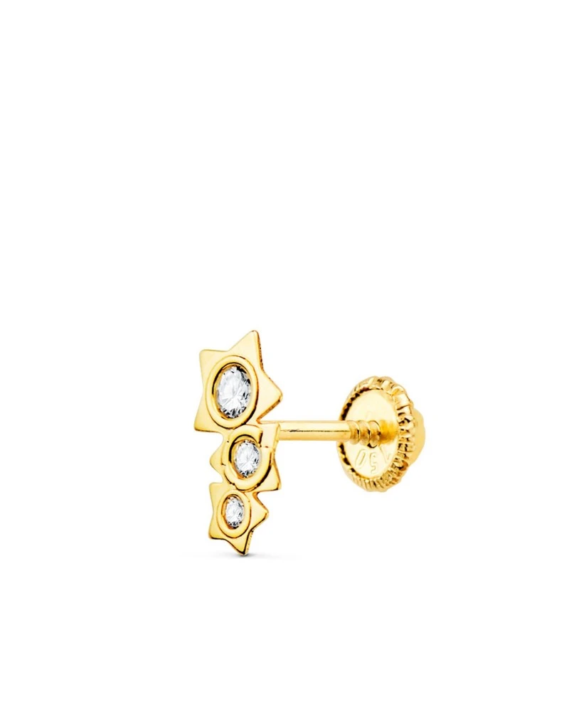 18K PIERCING OREJA ORO AMARILLO TRES ESTRELLAS CON CIRCONITAS 7X3 mm
