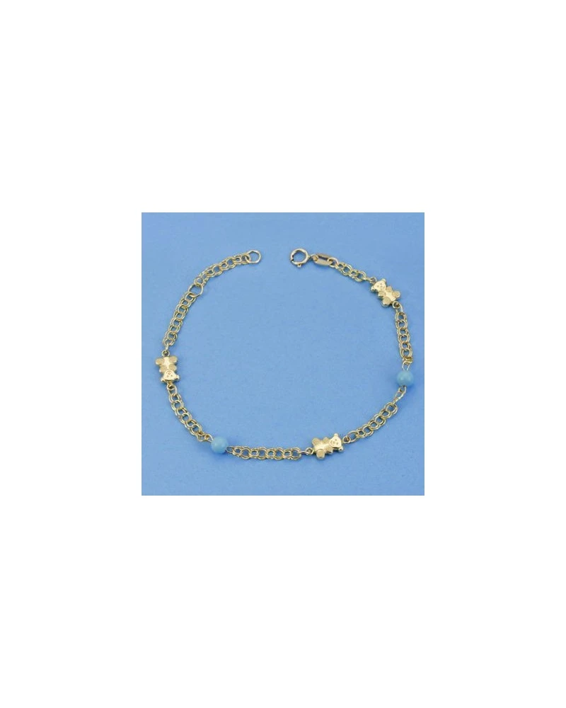 Pulsera con osos y turquesas con un largo de 18 cm. Este sello forma parte de la colección de oro de Falomir Joyas, y se entrega con estuche y marca de contraste oficial.