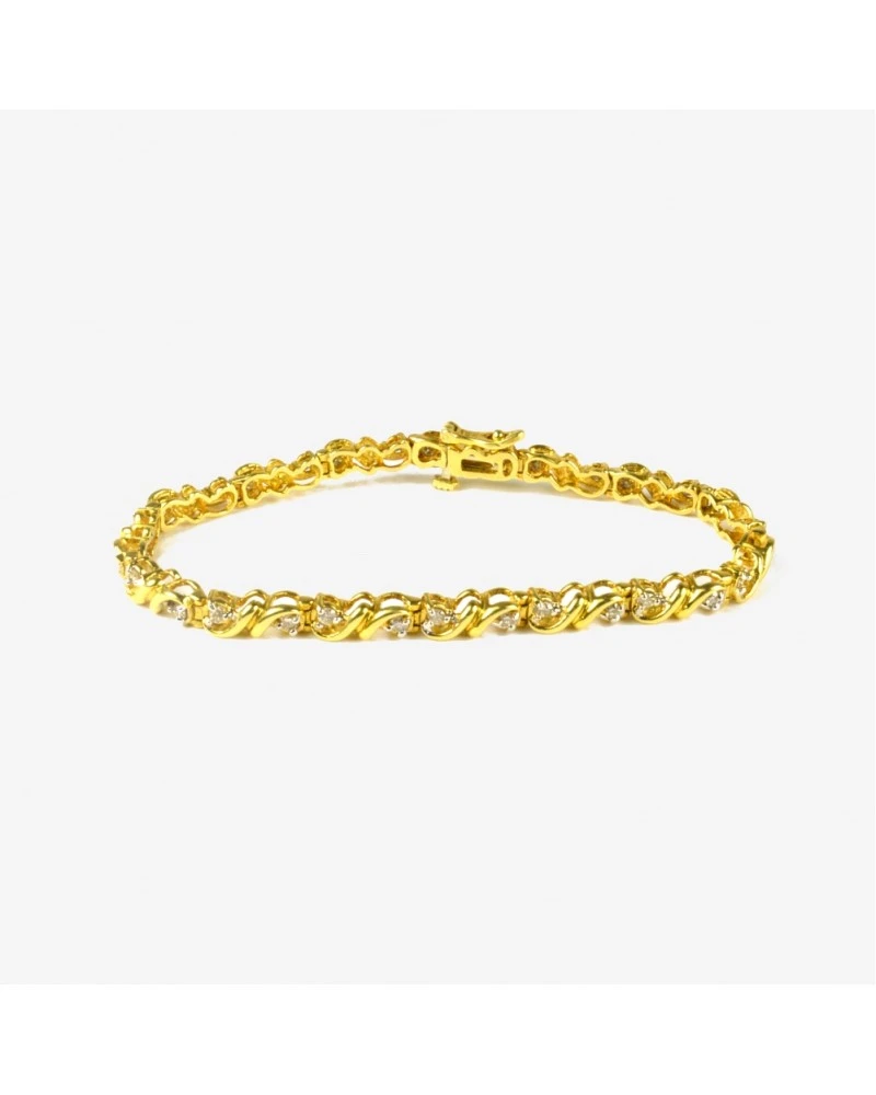 Pulsera de oro amarillo de 18 kilates con diamantes. Tiene 30 diamantes de 2 mm engastados con garras de oro blanco. 14 gramos de oro