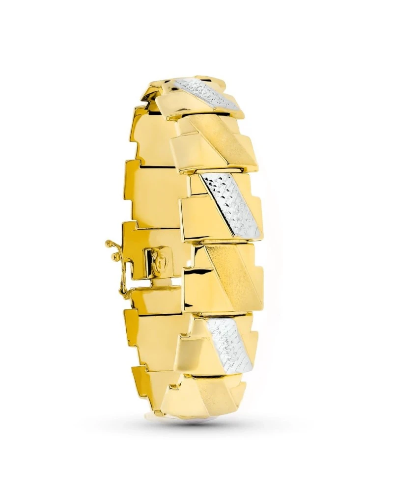 Pulsera de oro 18 kilates, con un largo de 19,5cm. Esta pulsera forma parte de la colección de oro de Falomir Joyas, y se entrega con estuche y marca de contraste oficial.