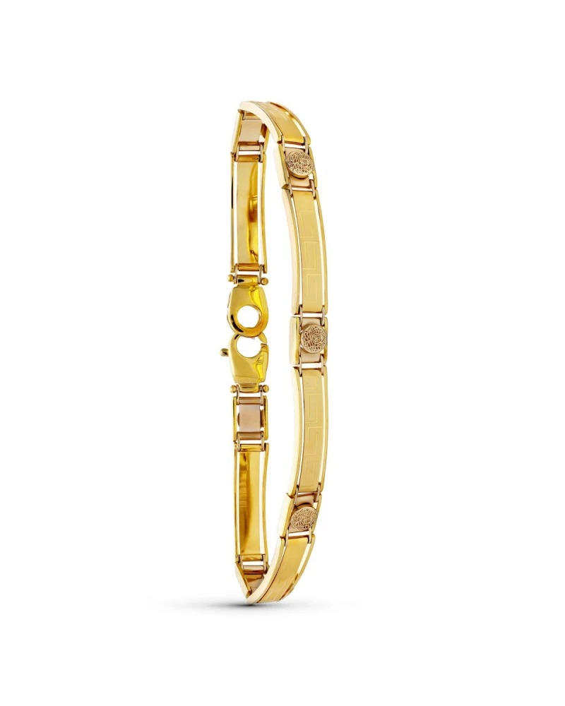 18K PULSERA ORO BICOLOR CABALLERO GRECA 19CM ANCHO 8 MM
