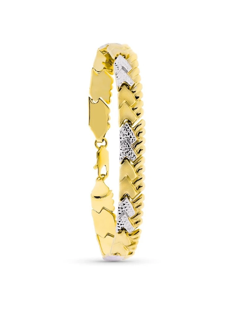 18K PULSERA ORO BICOLOR ESTAMPACION 19 CM