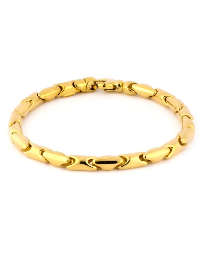 Pulsera de oro amarillo de 18 kilates. Esta pulsera forma parte de la colección de oro de Falomir Joyas. Incluye una marca de contraste oficial 750, sello de fabricante y se entrega con estuche y marca de contraste oficial. Las características de esta pulsera son: Largo: 20,5 cm, ancho: 5 mm.