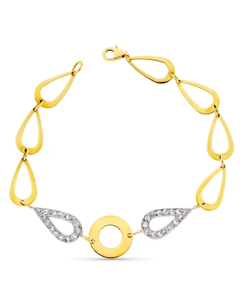 Pulsera de oro blanco y oro amarillo de 18 kilates. Esta pulsera forma parte de la colección de oro de Falomir Joyas. Incluye una marca de contraste oficial 750, sello de fabricante y se entrega con estuche y marca de contraste oficial.