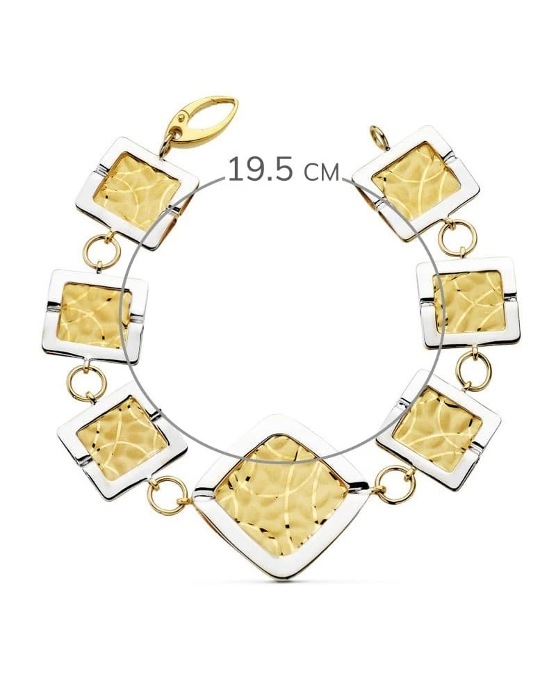 Pulsera de oro blanco y oro amarillo de 18 kilates. Esta pulsera forma parte de la colección de oro de Falomir Joyas. Incluye una marca de contraste oficial 750, sello de fabricante y se entrega con estuche y marca de contraste oficial. Las características de esta pulsera son: Largo: 19,5 cm.