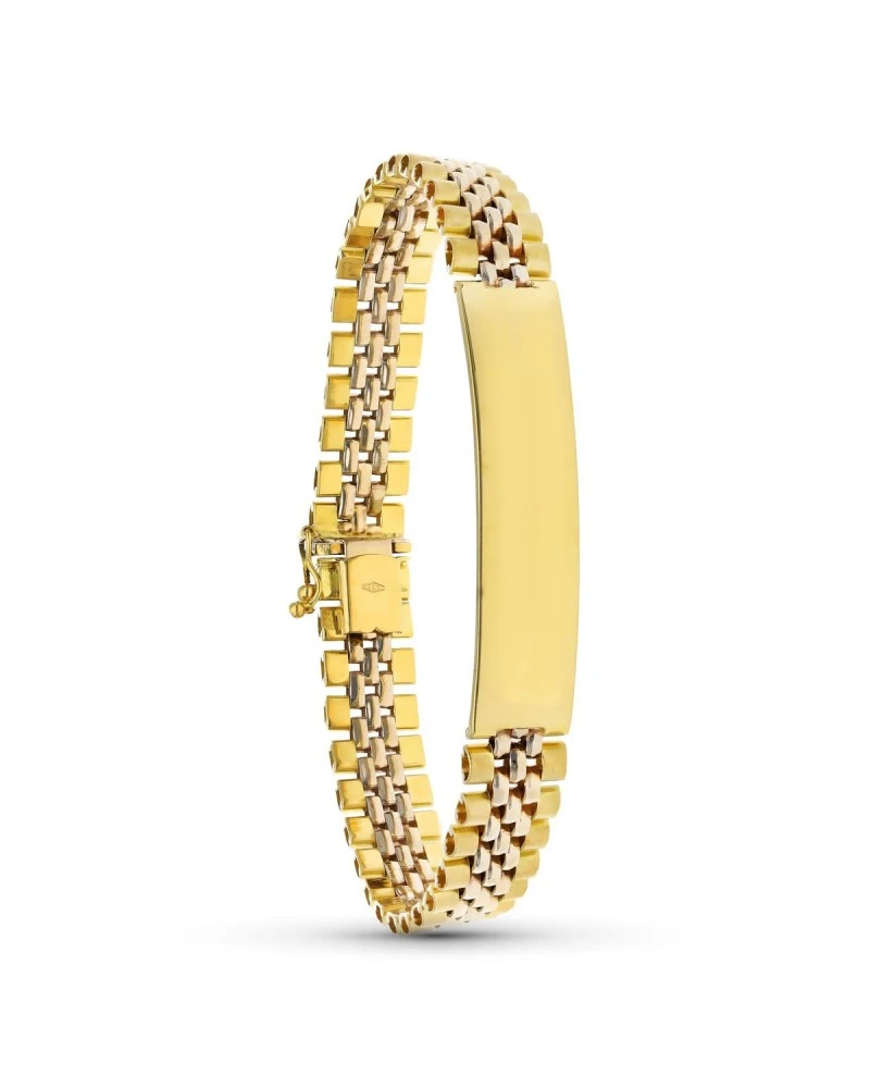 Pulsera esclava de oro 18 kilates, con un largo de 21,5 cm y un ancho de 10mm. Esta pulsera forma parte de la colección de oro de Falomir Joyas, y se entrega con estuche y marca de contraste oficial.