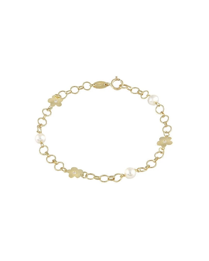 Pulsera tanto para niña como para mujer. Esta pulsera tiene un largo de 17 centímetros. Con cierre resorte (también llamado cierre de muelle) todo de oro de 18 kilates.