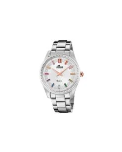 En la esfera del reloj se puede ver la marca lotus y, nos indica también que es un reloj de pila con la palabra «Quartz» que significa cuarzo.