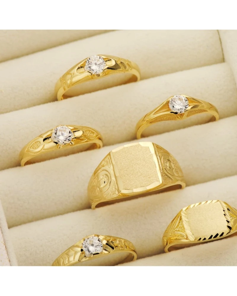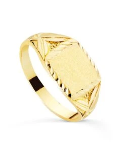 Sello de oro amarillo de 18 kilates ideal para niño en edad de comunión. Cadete macizo y tallado con un ancho de 10 x 9 mm. Este sello forma parte de la colección de oro de Falomir Joyas, y se entrega con estuche y marca de contraste oficial.