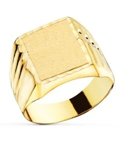 18K SELLO ORO AMARILLO CABALLERO HUECO TALLADO ZONA GRABADO 12X10MM