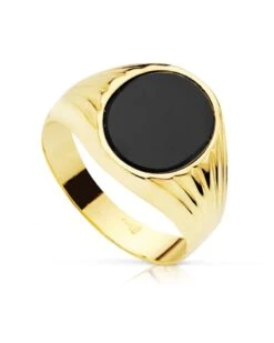 18K SELLO ORO AMARILLO PIEDRA ONIX OVAL 12X10 MM