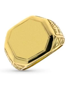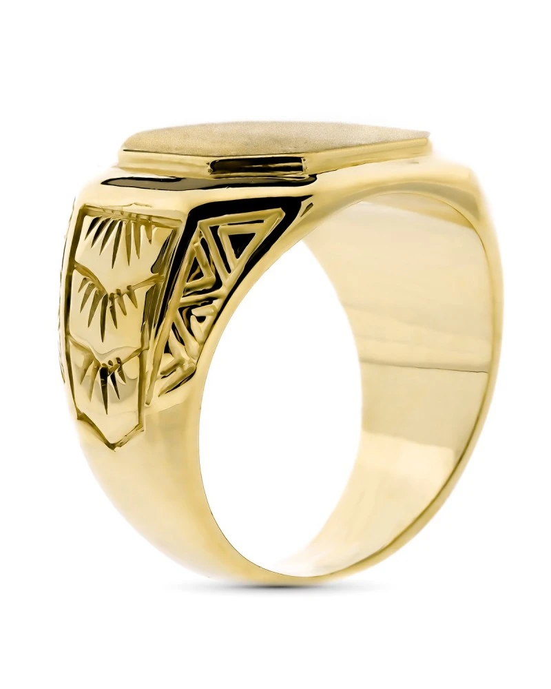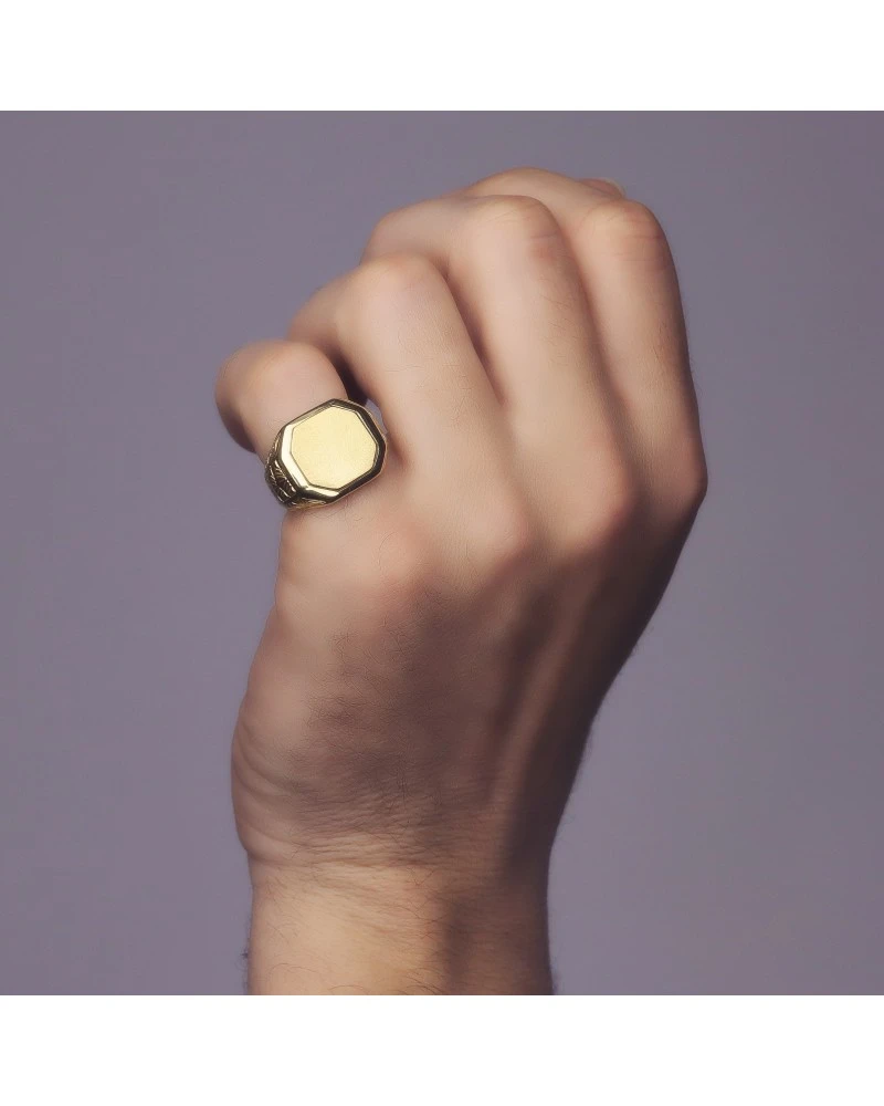 Sello de oro amarillo de 18k con zona de grabado y un tamaño de 14x15mm.