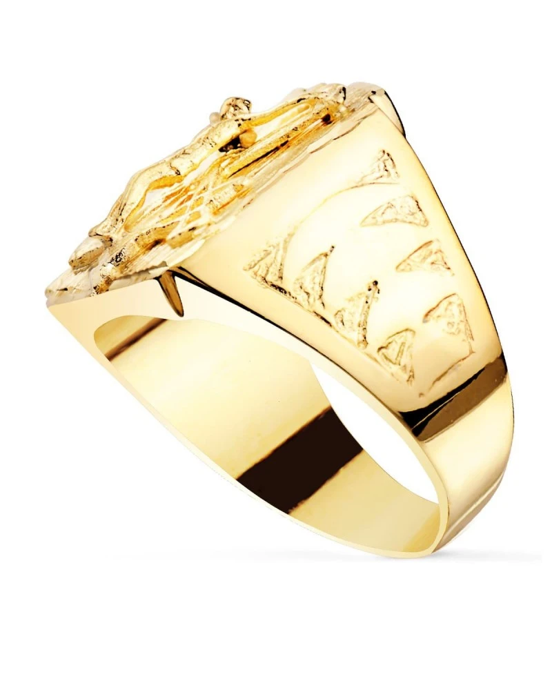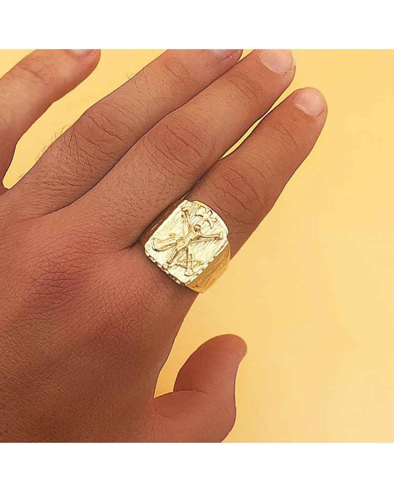 Sello de oro amarillo de 18k con forma de cristo de la legión y un tamaño de 21x17mm.