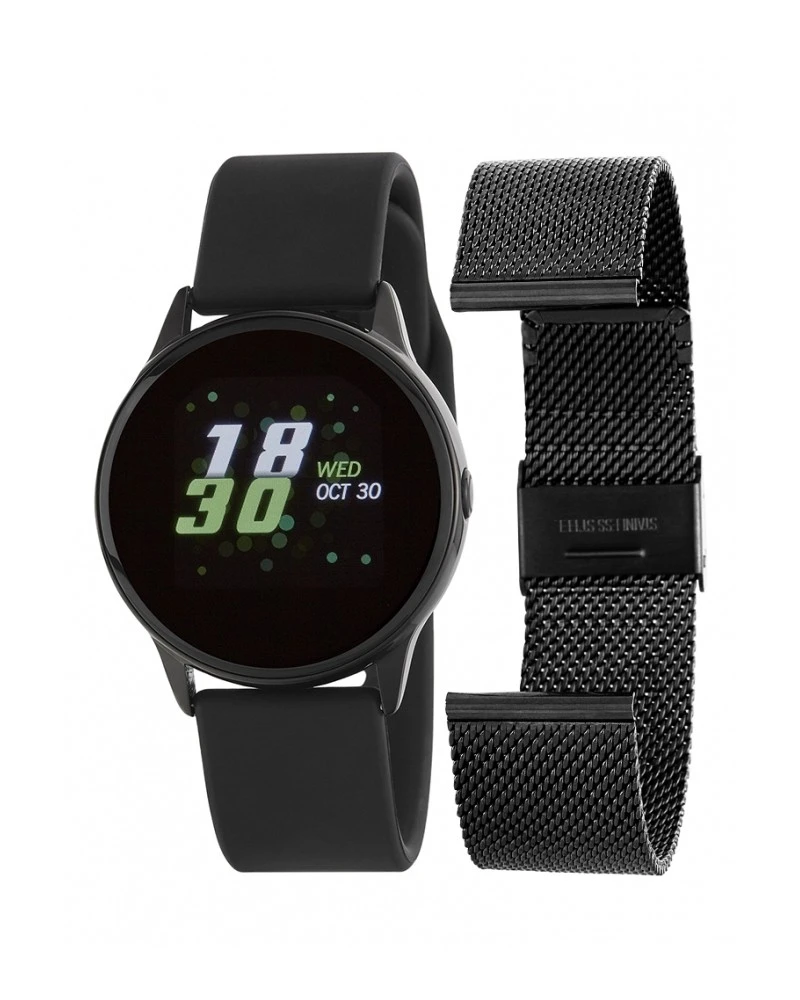 Nuevo reloj Smartwatch de Marea con correa intercambiable. Tiene una autonomía de entre 5 y 7 días en función del uso que le demos. El tamaño es de 39 mm y la cadena de acero. Permite conocer: Las calorías consumidas, la distancia recorrida, los pasos, establecer una meta de pasos, la frecuencia cardiaca, la monitorización del sueño, la presión sanguínea, el oxigeno en sangre, tiene un modo sport, un recordatorio sedentario, un recordatorio de beber agua, notifica las llamadas, le llegan las notificaciones de redes sociales, las notificaciones de mensajes, leer los mensajes de whatsapp en la pantalla, tiene alarma, cronómetro, cuenta regresiva, indica el tiempo, da datos exteriores, es impermeable, tiene control de música, tiene control remoto de la cámara del teléfono móvil para permitir hacer fotos a distancia, tiene personalización de la pantalla de inicio, tiene una aplicación para encontrar el móvil por si lo hemos perdido cerca y se puede encender la pantalla girando la muñeca.