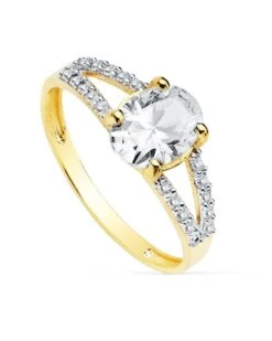 18K SOLITARIO ORO BICOLOR CIRCONITAS PIEDRA OVAL 8X6 MM