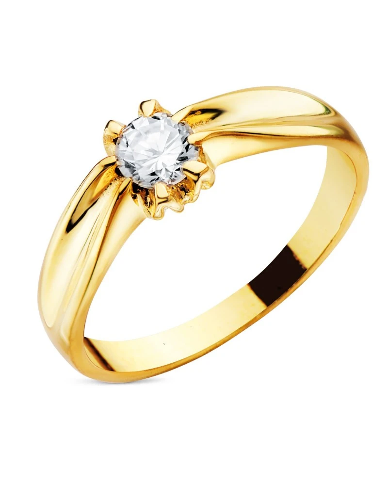 18K SOLITARIO ORO AMARILLO MACIZO CIRCONITA DE 5 MM CON GARRAS FORRADO