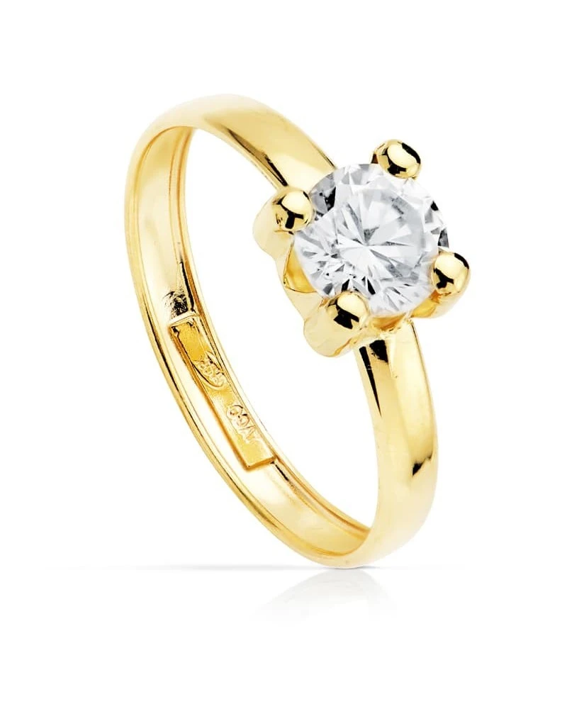 Solitario de oro amarillo de 18 kilates ideal para niño en edad de comunión. Como todo solitario lleva una circonita. Este solitario forma parte de la colección de oro de Falomir Joyas, y se entrega con estuche y marca de contraste oficial.