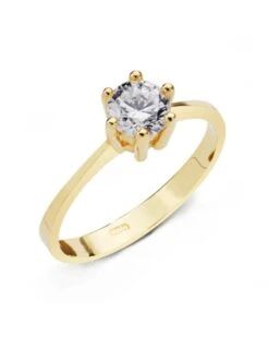 Solitario de oro amarillo de 18 kilates ideal para niño en edad de comunión. Como todo solitario lleva una circonita. Este solitario forma parte de la colección de oro de Falomir Joyas, y se entrega con estuche y marca de contraste oficial.