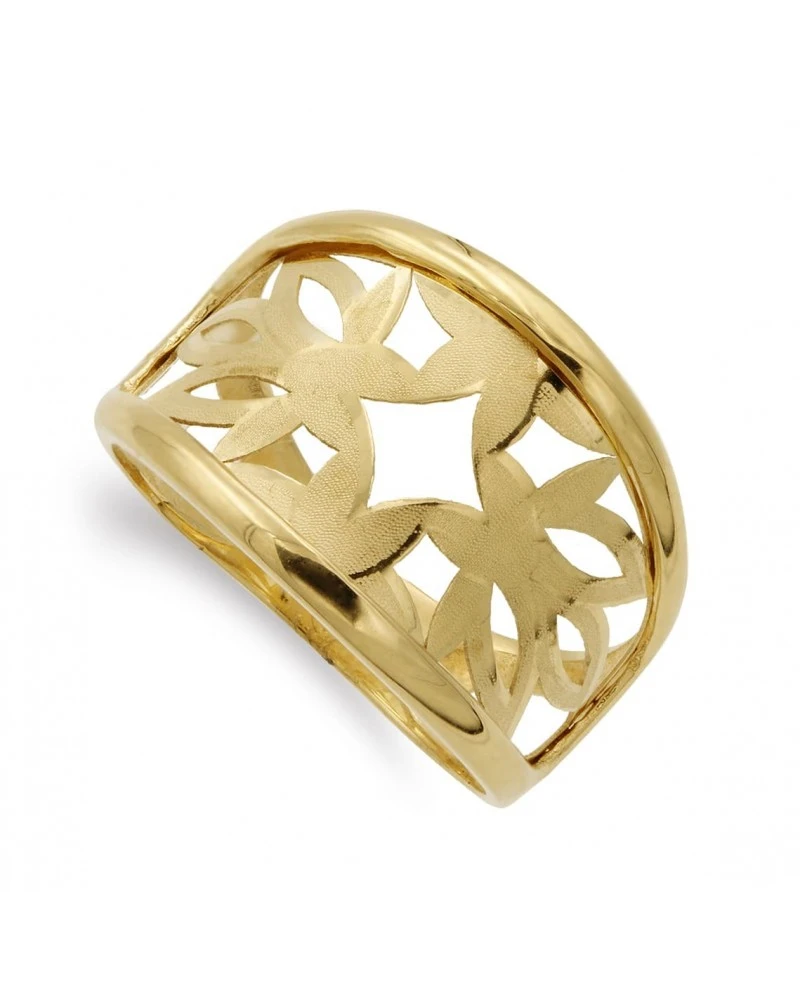 Sortija de oro amarillo de 18k calada ancho 15 mm