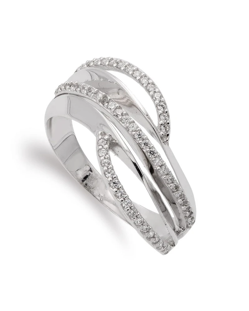 Sortija de oro blanco de 18k con circonitas 11 mm ancho 3 mm