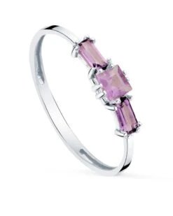 Sortija de oro blanco de 18k 3 amatistas naturales 3×3 mm 4×2 mm