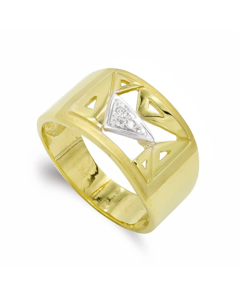 Sortija de oro blanco y amarillo de 18k triangulos calados