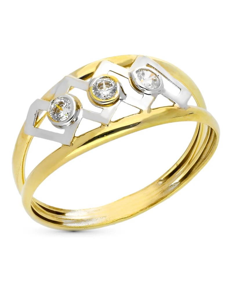 Sortija de oro blanco y amarillo de 18k 2 hilos circonitas