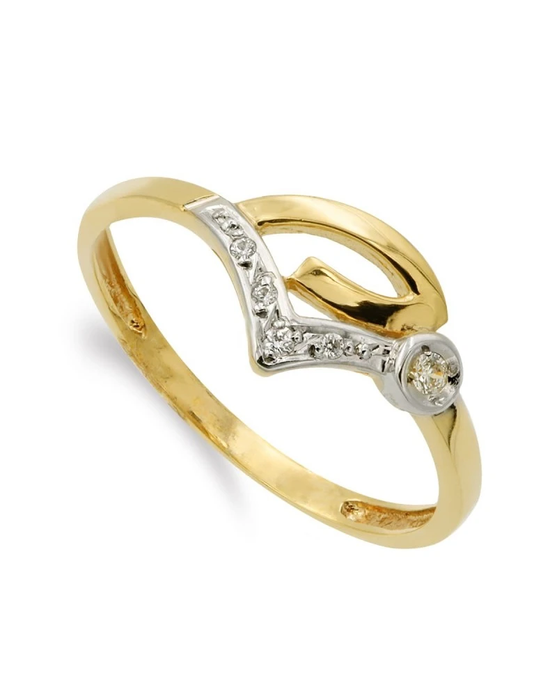 Sortija de oro blanco y amarillo de 18k con circonitas 8 mm cuerpo 2 mm