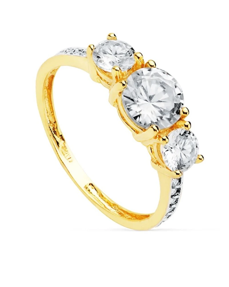 18k Sortija tresillo oro amarillo piedras 6 de 4 mm circonitas